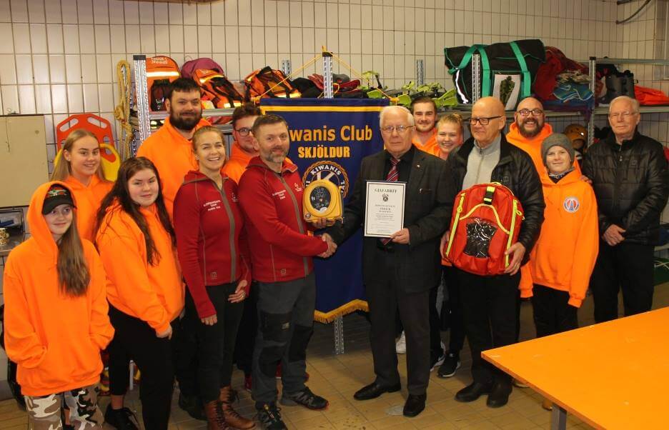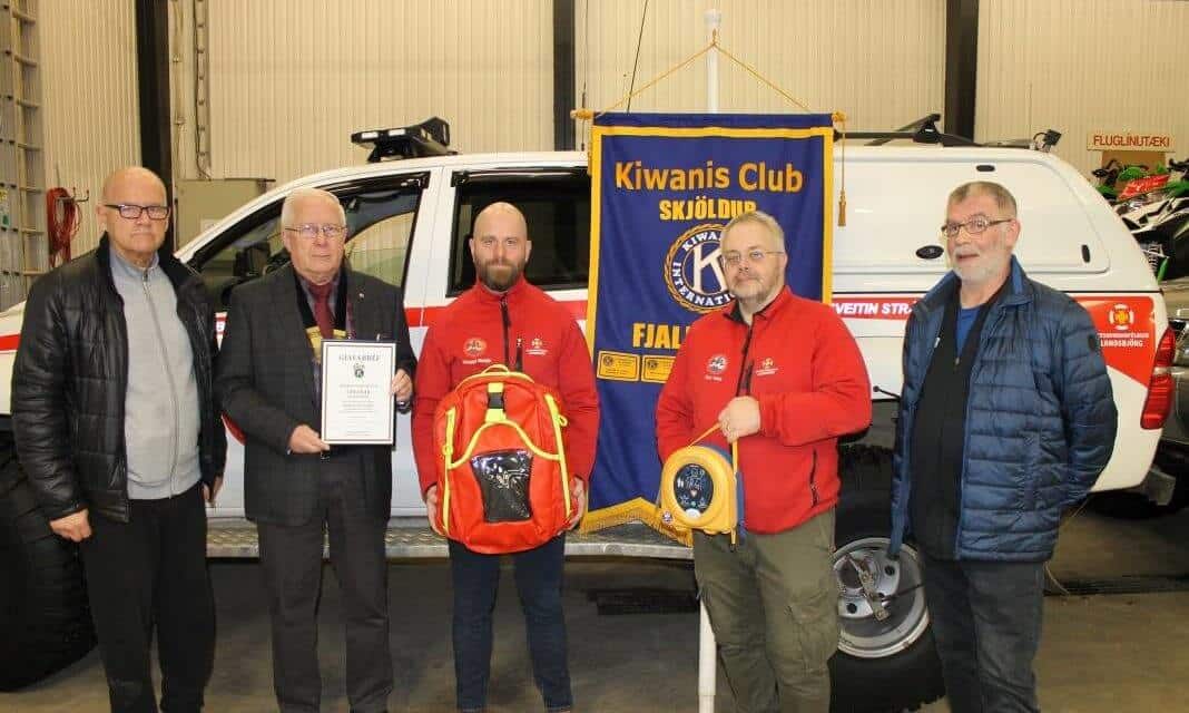 Kiwanisklúbburinn Skjöldur í Fjallabyggð gaf björgunarsveitunum Tindi í Ólafsfirði og Strákum á Siglufirði sitthvort hjartastuðtækið sem Donna er með til sölu. Einnig fengu björgunarsveitirnar sitthvoran bakpokann sem eru sérhannaðir til að bera sjúkrabúnað og hjartastuðtæki, hjartastuðtækin eru frá HeartSine og bakpokarnir frá StatPacks.