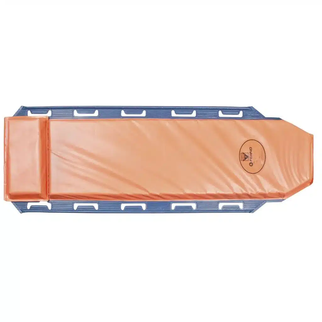 Handle part that can be folded out on each side of the mattress consist of 5 handles on each side and have a very durable construction to support additional ergonomic features for the paramedics. Easy Transfer mattress is equipped with a glass fibre layer on the back of the mattress to make it durable and reduce friction when sliding a patient on top of the mattress. This function can be very useful when the patient has to be transported from a very narrow environment where the stretcher is impossible to bring. Specifications: PVC- Polyester fibre flame retardant + glass fibre + PP plate 6,2 cm polyether and Sensus (material that reads your body forms easy and deliver super comfort)