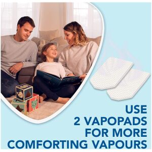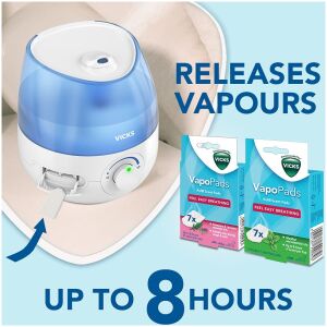 - DUAL VAPOPAD TECHNOLOGY: 2 slots for VapoPads with essential oils for extra comfort and soothing vapours for easy breathing – 2 menthol pads included.
