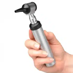 - Otoscope head with removable 3x magnifying lens, and insufflator fitting