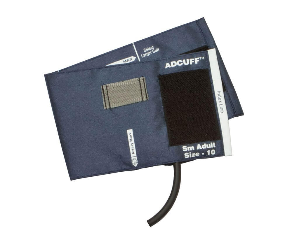 Adcuffs are the most feature-rich blood pressure cuffs on the market. The traditional Adcuff model with one tube can be used with most palm aneroids and many NIBP monitors, and features a two-piece cuff and bladder: