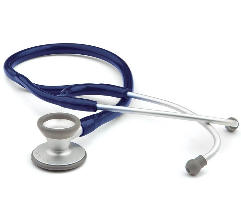 - Cardiology headset with large-bore aluminum binaurals fixed at 15° angle to maximize comfort and acoustic seal