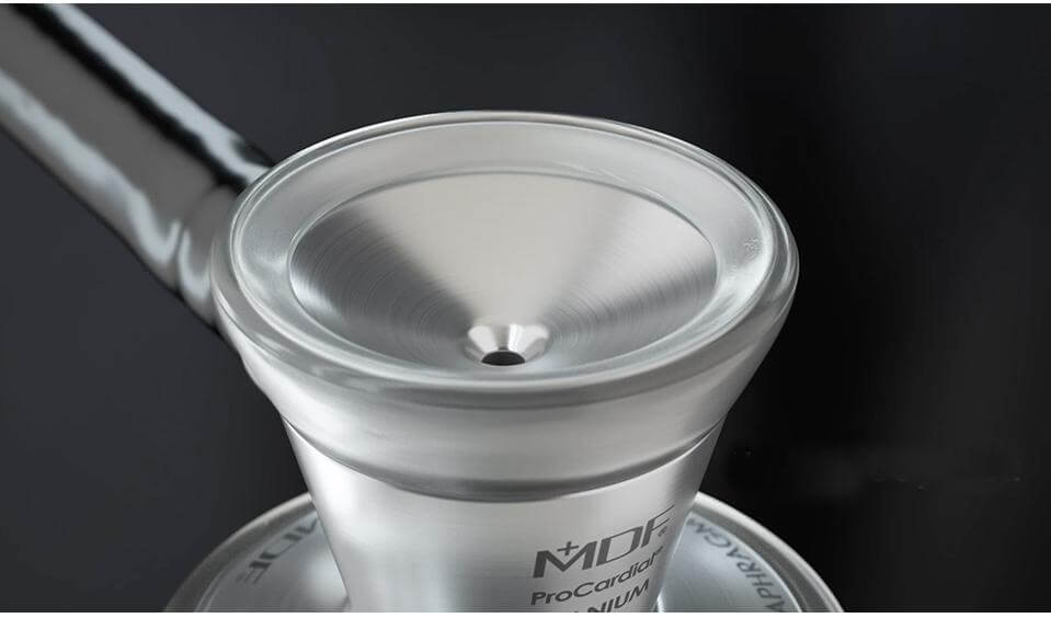 Constructed from lightweight titanium, the MDF® ProCardial® Titanium Stethoscope delivers accurate auscultation of heart, lung, and Korotkoff sounds with acoustic integrity and clarity. Compared to its 9.6oz stainless steel counterpart, our titanium ProCardial® weighs in at only 4.9oz. Imagine what that feels like over a 12 hour shift. With its extra-deep, cone-shaped bell and ultrasensitive diaphragm, this cardiology stethoscope detects the entire frequency range required by cardiologists.