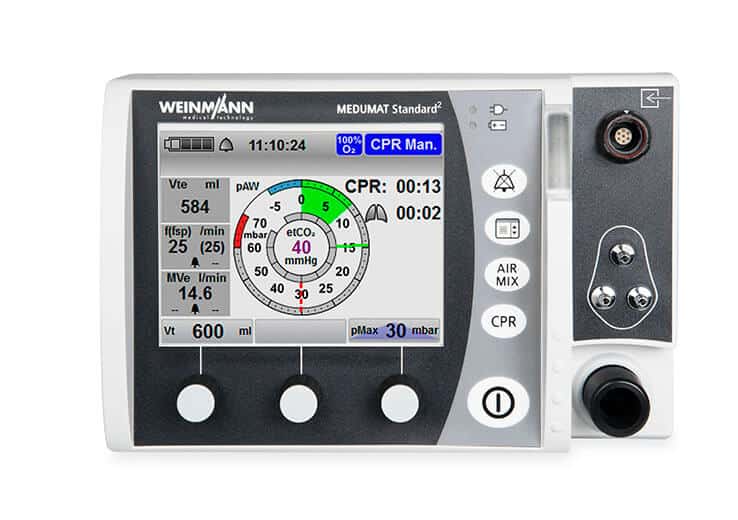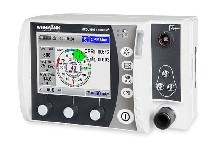MEDUMAT Standard² is your reliable partner during an emergency response – for the ground emergency medical service, the air rescue service, and in the military medical corps. The intuitive emergency ventilator offers maximum safety for the patient and the user thanks to numerous features.