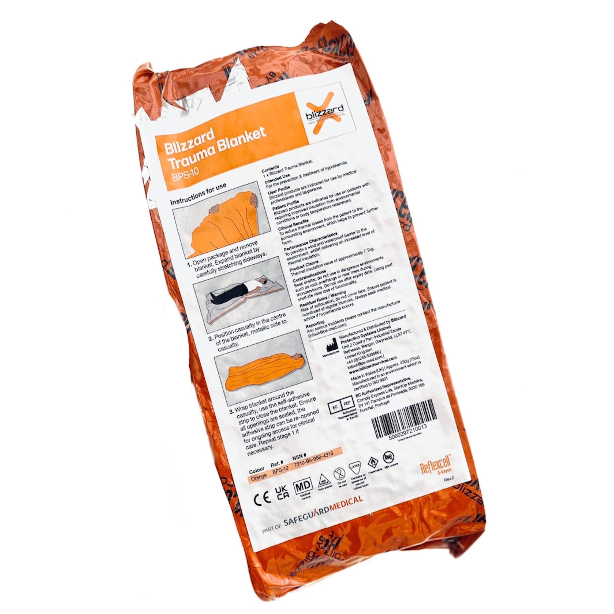 The Blizzard 3 Layer Trauma Blanket is the new standard in thermal protection for casualties. This extra-large blanket wraps around a casualty and seals with a self-adhesive closure. It can easily be re-opened for examination of the casualty or medical intervention.