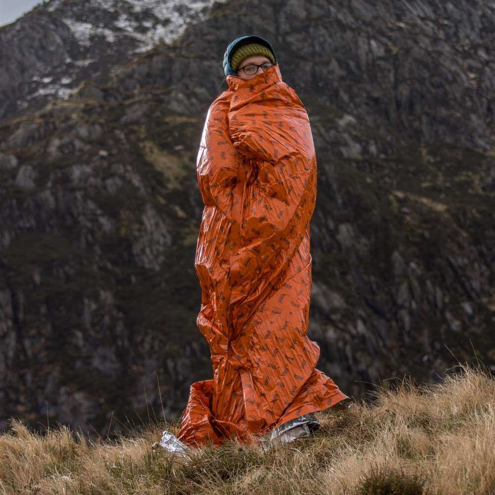 By carefully sealing the blanket to form a tube it can be used as a sleeping bag for one or two persons (particularly useful for re-warming chilled casualties). Carry a small roll of duct tape to help “sculpt” the blanket into any desired shape, reinforce holes, mend slight damage etc. The blanket can also be sealed around an ambulant casualty, affording them a high degree of protection, yet allowing them to walk. Arm holes can be cut if necessary.