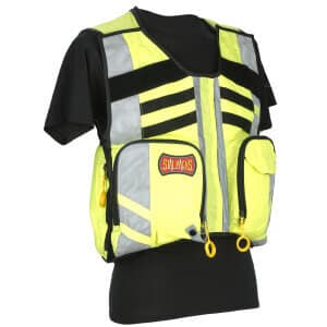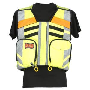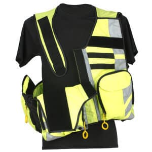 This high visibility safety vest keeps personal and medical equipment close at hand.