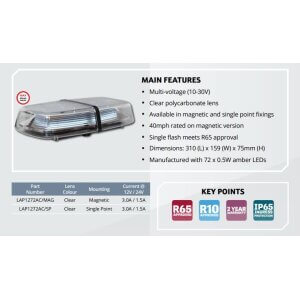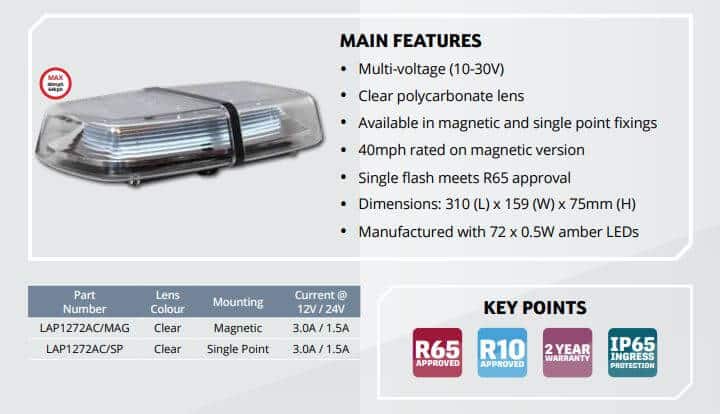 Mini ljósaboginn er afar léttur og ECE R65 vottaður. Hann er 10-30 Volt og með mjög litla orkunotkun. Hann hentar í fjölþætt verkefni verkefni og kemur annars vegar með eins bolta festingu eða segulfestingu.