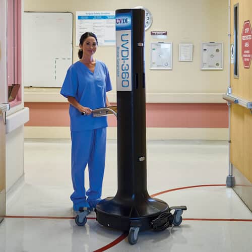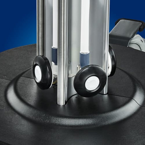 Designed with four 62″ maximum UV output lamps providing 360 degrees of UV radiation Lamps are encapsulated with a special UV-transmissive polymer to contain glass in case of breakage