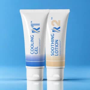 R2 svalar, gefur raka og hjálpar til við að viðhalda mýkt húðar sem skaddast hefur við geislameðferð og sólarljós. R2 veitir einnig UVA- og UVB-vörn til að draga úr hættu á viðbrögðum við sólarljósi eftir meðferð.