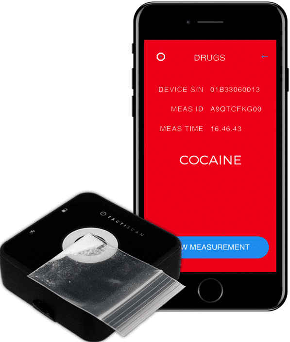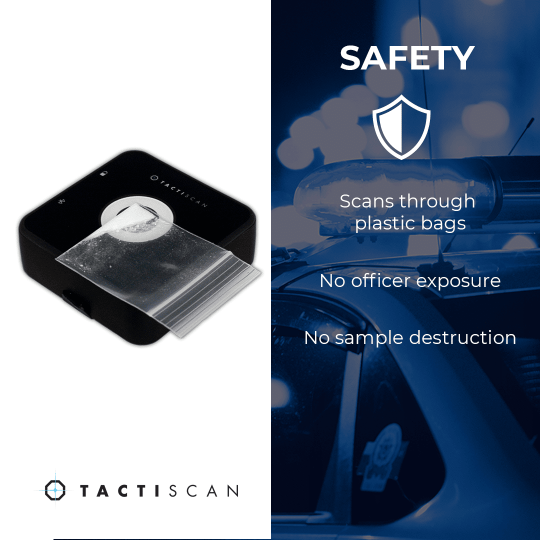 A re-usable pocket-sized narcotics screener for police patrols brings new levels of safety and efficiency to police fieldwork. TactiScan® is the first of its kind to provide an unforeseen range of benefits in a portable, highly accurate unit. Measuring samples is safe, fast, and easy with TactiScan – no expertise needed!