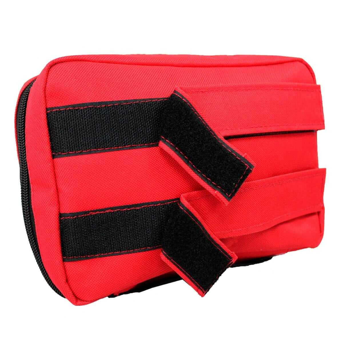 Þessi taska er sveigjanleg en sterkbyggð. Í henni má geyma nauðsynlegar sjúkravörur fyrir fyrstu hjálp og flokka þær í hólf sem eru í töskunni. Hún er hentug til að grípa með sér, í ferðalög eða geyma í bílnum. Franskur rennilás er á henni sem læsist við teppið í farangursgeymslu bílsins.